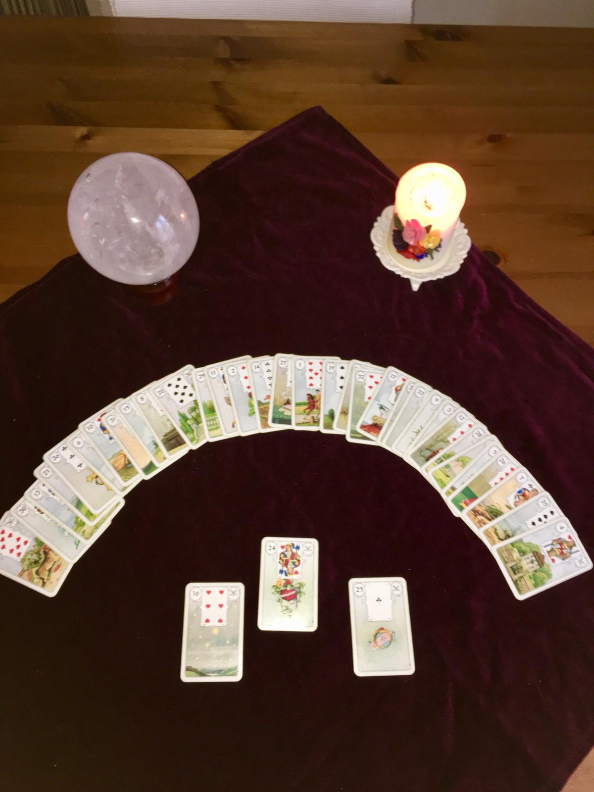 Dazu benütze ich die seit über 200 Jahren bekannten "Madame Lenormand" Karten. Das faszinierende Tarot, welches der Überlieferung nach erstmals im 15. Jahrhundert bekannt wurde, verwende ich ebenfalls sehr gerne. Ebenso verschiedene andere Karten, welche ich jeweils intuitiv auswähle, je nach Fragestellung und Anliegen.
